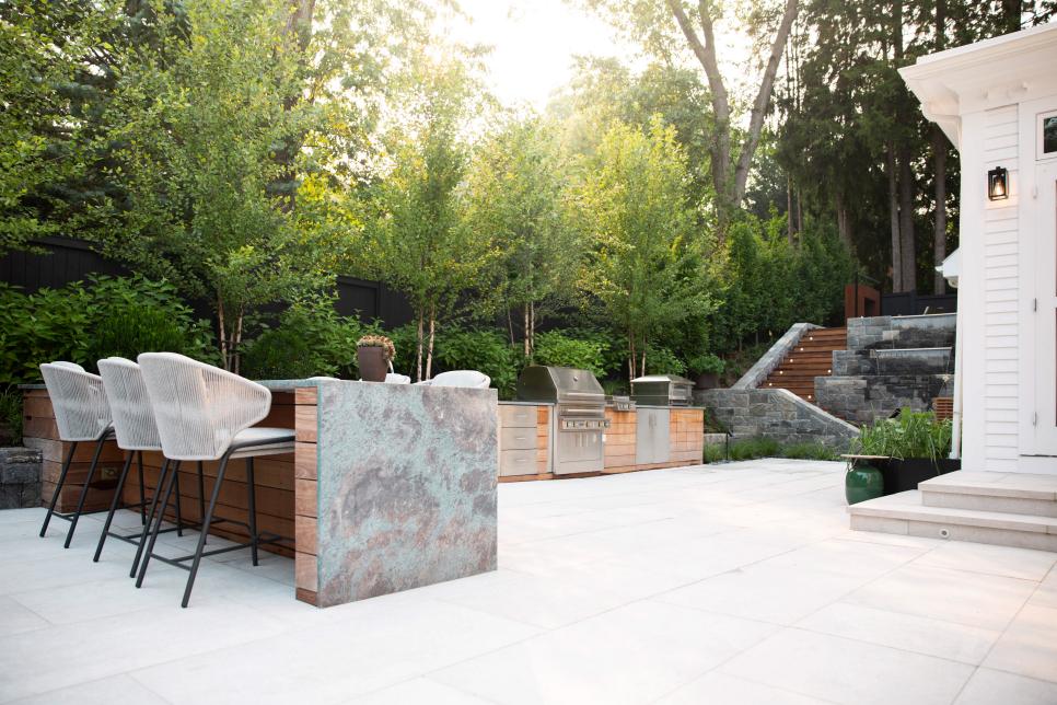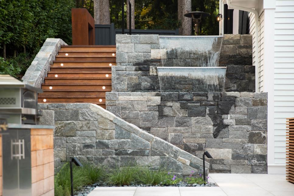 Yes. In fact, elevation changes often create opportunity for layered design. Retaining walls and stepped transitions can transform challenging topography into structured outdoor living environments.