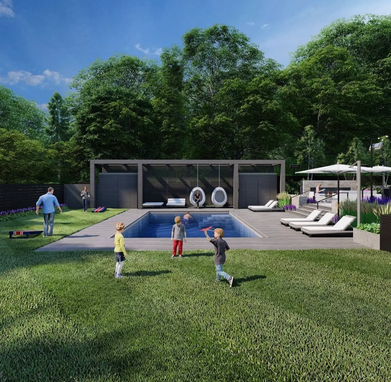 For a design-driven project incorporating a custom pool, terraced stone retaining, architectural water feature, pergola structure, and outdoor kitchen, investment typically ranges from $175,000 to $300,000+ depending on material selections and structural complexity.